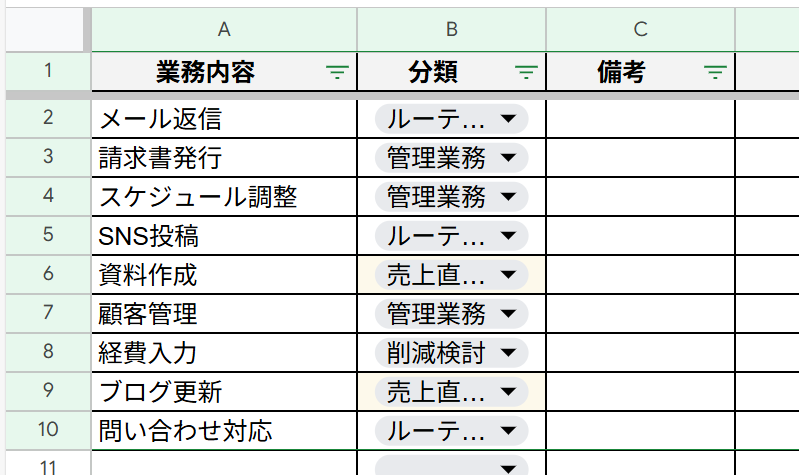 業務を一覧化することで、現状の業務量を客観的に把握できます。